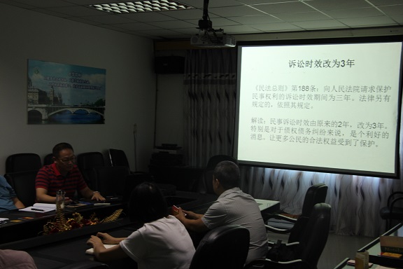 为深贯彻实施“七五”普法规划,增强教职工法治观念,树立法治意识,在全院形成尊法学法守法用法的浓厚氛围,实现依法办学、依法治教,2017年8月30日下午,医学院特邀吴洪槟律师为全院教职工宣讲《中华人民共和国民法总则》。吴律师从《民法总则》与《民法通则》的区别,“胎儿有继承、接受赠与权利”、“ 限制民事行为能力人的年龄下调为八周岁”、“ 见义勇为、乐于助人有保障” 等《民法总则》亮点等方面对《民法总则》进行了诠释,教职工获益匪浅,并就有关问题进行热烈讨论。
