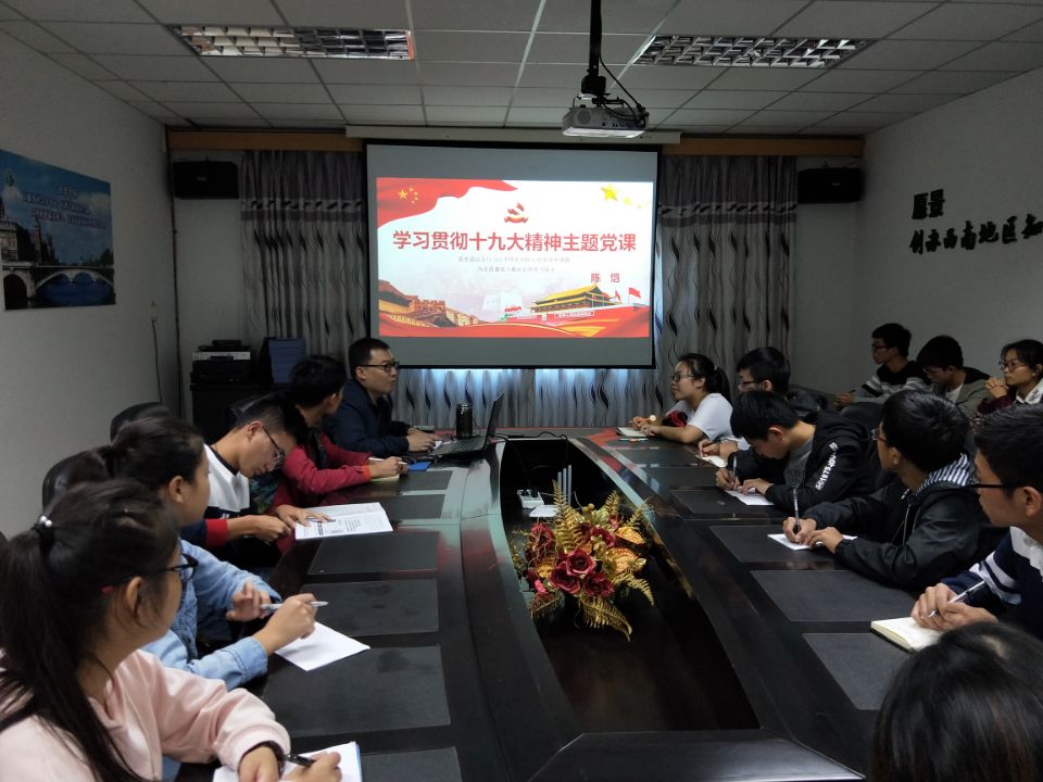 11月9日中午,医学院党委副书记陈恺在西苑办公楼三楼会议室为医学院团学组织学生干部进行了“学习贯彻十九大精神”的主题党课。
