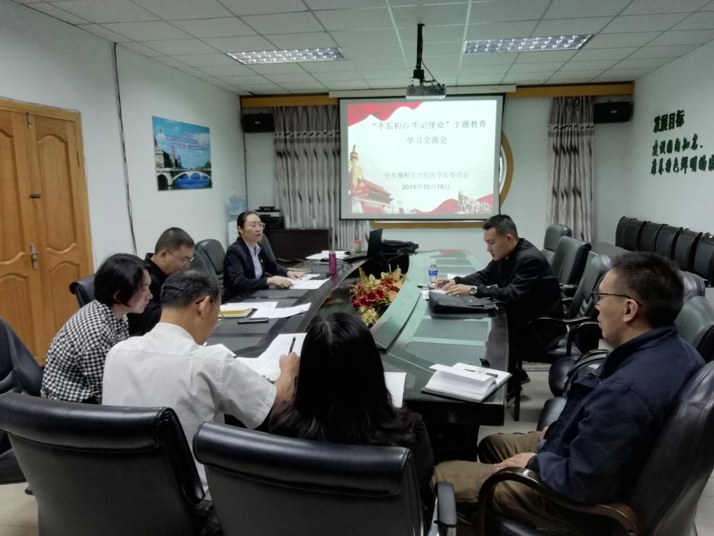 2019年10月18日上午,医学院党委班子“不忘初心、牢记使命”主题教育集中学习交流会在西苑三楼会议室召开,学校第七指导组成员、发展规划处处长助理王发奎出席会议,院长赵牧,教工党支部书记、纪委委员周建平,学生党支部书记、纪委委员黄馨瑶列席会议。会议由党委书记张勤主持。