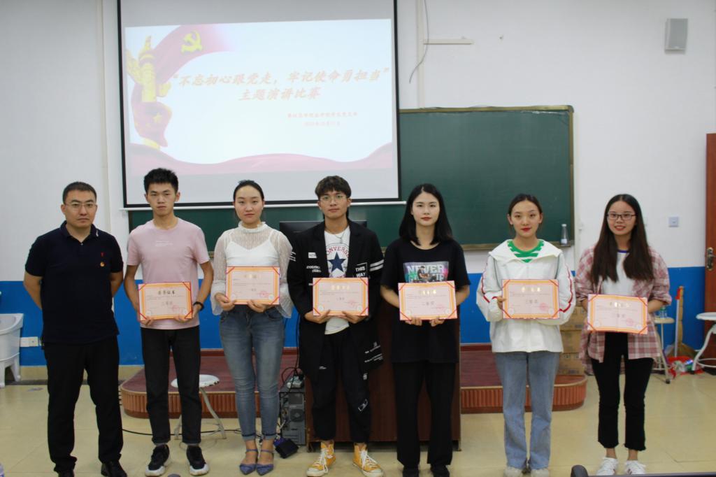 2019年10月17日晚,医学院学生党支部在医学实验中心解剖楼215教室举办“不忘初心跟党走,牢记使命勇担当”主题演讲比赛活动,医学院党委副书记陈恺、学生支部书记黄馨瑶、副书记罗涛及师生党员、预备党员63人、入党积极分子77人参加了活动。