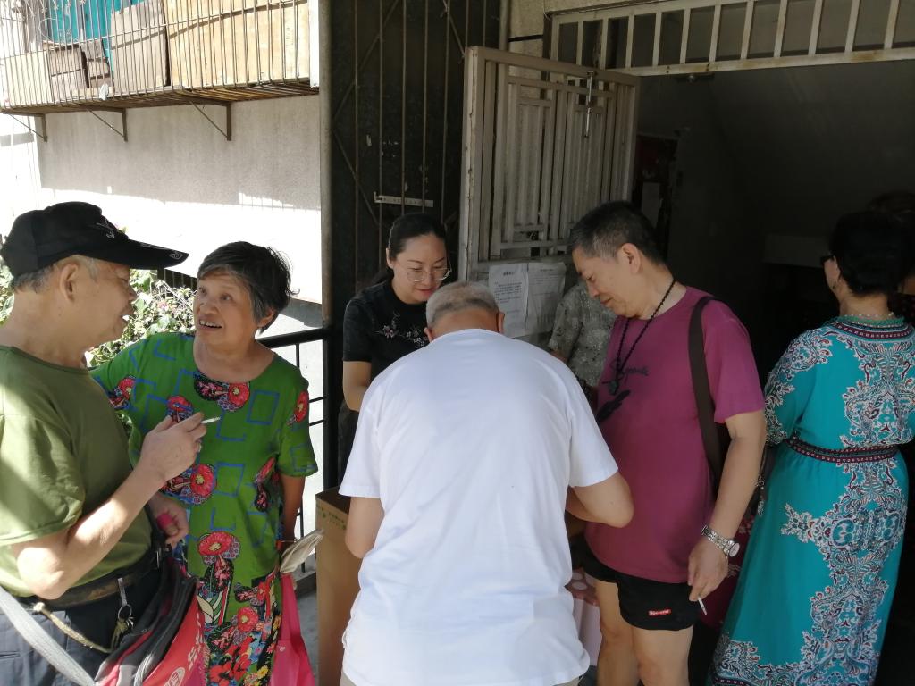 北苑家属区9号楼前为老同志发放慰问品