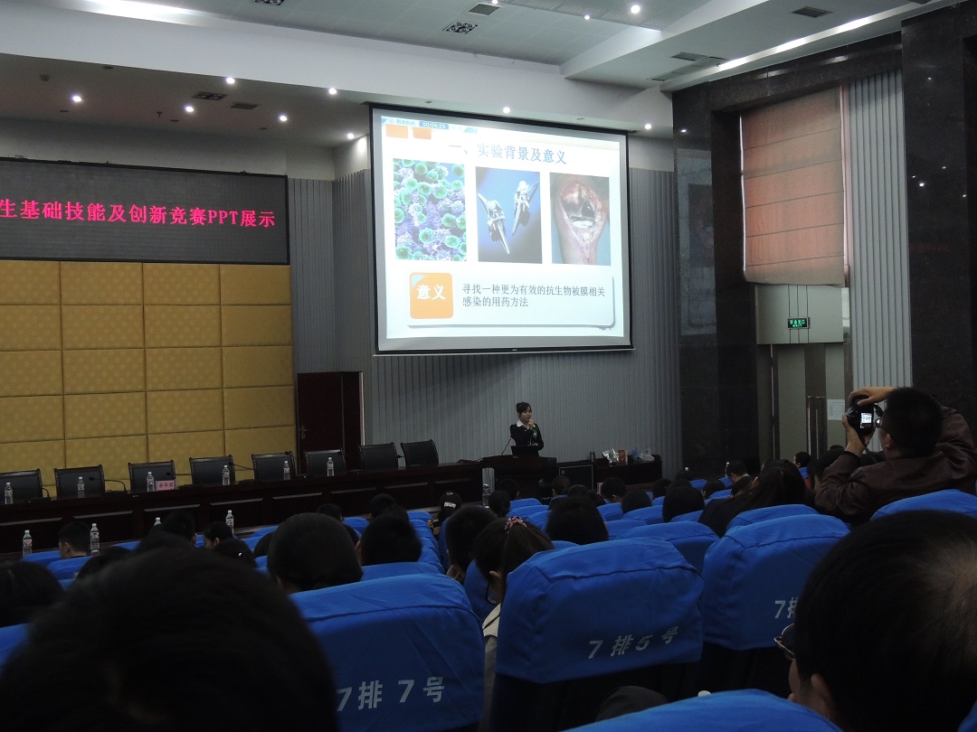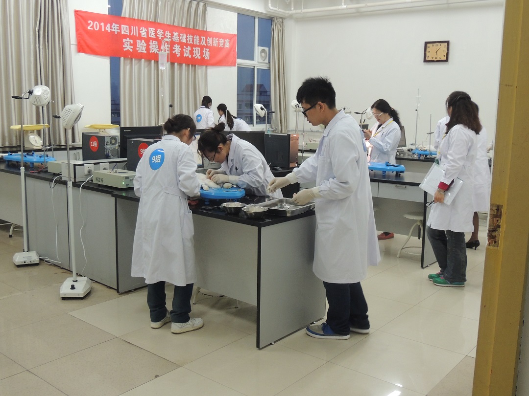 2014年11月1 - 2日,由四川省教育厅主办、泸州医学院承办的2014年四川省医学生基础技能及创新竞赛在泸州医学院城北校区举行。来自泸州医学院、四川大学、川北医学院等省内10所医学院校的17支参赛队参加了本次竞赛。此次竞赛包括基础理论知识考试、基本技能操作比赛、PPT创新实验成果展示等三个部分,竞赛不仅考核了参赛选手技能操作的规范性、数据处理的正确性、处理突发事件的应对性、实验的严谨性和科学性等方面的能力,而且还考核了参赛选手在基础医学学习阶段自主设计完成或亲自参与完成科学研究的能力。我校医学院组织了两支队伍代表攀枝花学院参赛,经过激烈逐角,由李明遥、李贞、邓自建等同学组成的参赛队荣获三等奖。