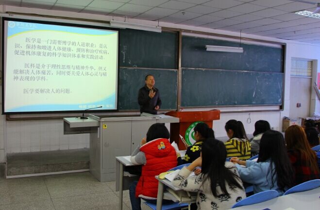 肖立军书记结合自身丰富的工作、管理经验和体会,从一个学者和优秀教育者的双重角度,在高尚的医学人文关怀、充分的医患沟通交流、积极的团队合作精神三个方面为学生们提出了现代医学呼唤医学人文关怀,治疗即关怀,医学人文关怀要求医学生具备与患者沟通、协助、尊重、教育患者的能力;具有良好的团队合作精神等理念。并与全体同学分享了如何不断完善自己,当今医学的发展趋势等内容,赢得了现场同学的阵阵掌声,对师生们的医学教育、学习及就业提出了独到见解和震聋发聩的思考。最后肖书记对所有学生提出了殷殷希望,希望作为二十一世纪的医生的同学们应成为细心的观察者、耐心的倾听者、敏锐的交谈者,更好地为祖国的卫生事业做出自己的贡献。