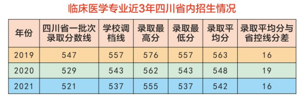 临床医学专业近3年四川省内招生分数线