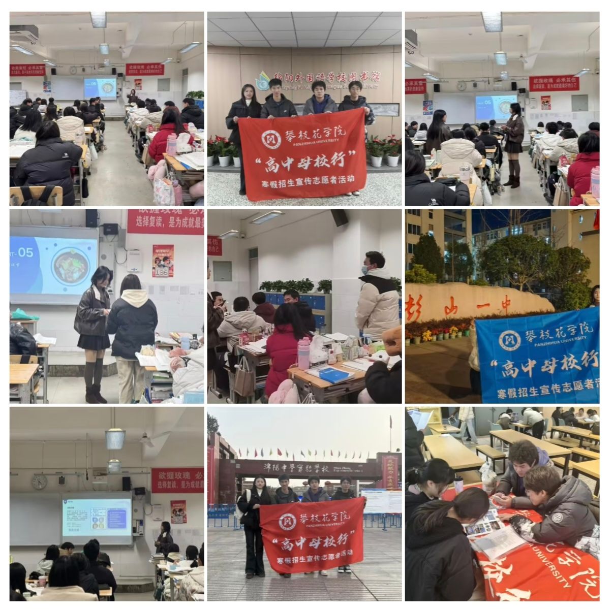 为扩大学校影响力,吸引优质生源,寒假期间,攀枝花学院基础医学院组织学生志愿者开展“高中母校行”招生宣传志愿行动。本次活动由学生自行组队,共组建16支宣传队伍,分赴安岳中学、绵阳外国语学校、绵阳中学实验学校及内江、彭州等地的多所高中,开展形式多样的招生宣传活动。