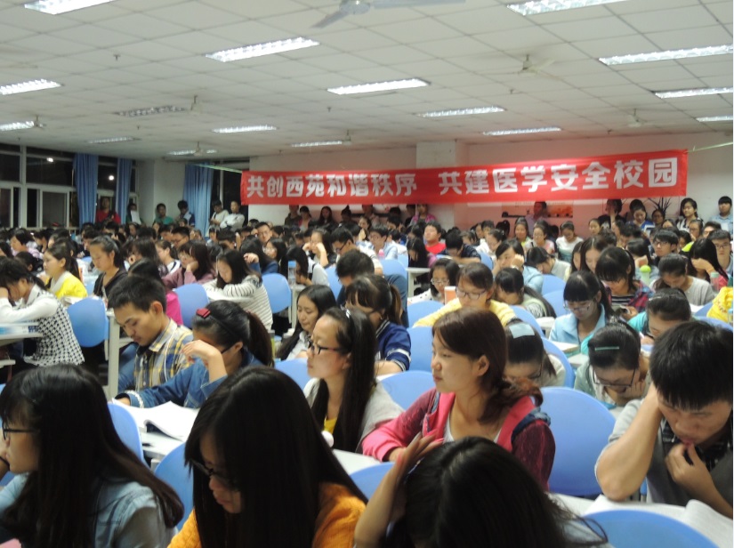 为增强我院学生的校园安全意识,普及安全防范知识,2015年10月15日晚医学院法制副院长赵奇志老师在笃行楼J1-1教室为全院师生开展了校园安全知识讲座。