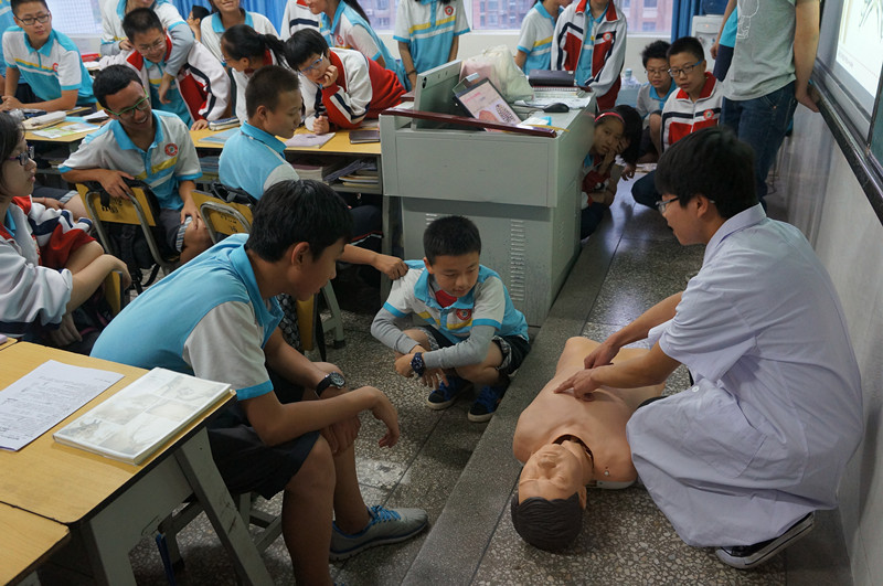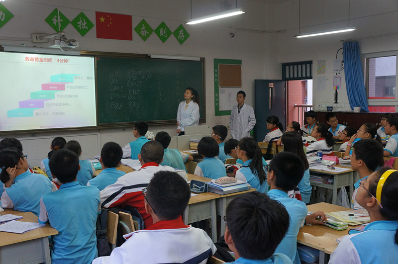 | 4月12日晚,由攀枝花学院医学院与攀枝花市红十字会联合申报的2014年四川省红十字青少年传播项目——“救在身边”校园急救知识讲座暨技能培训活动在攀枝花市第四十中小学举行。 本次急救技能培训人员由来自攀枝花学院医学院的4名教师和28名临床医学及护理学专业的学生党员志愿者组成,面向四十中小学2个年级,32个教学班,共计1500余名中学生开展包括心肺复苏、止血包扎、骨折固定等急救项目的现场操作演练。 本次“救在身边”校园急救知识讲座暨技能培训活动将在攀枝花学院十三个二级学院以及攀枝花市第四十中小学、第三高级中学、实验学校、第二中学和第四中学开展,覆盖人群2万余人,对于我市校园公共安全的保障将起到一定的推动作用。