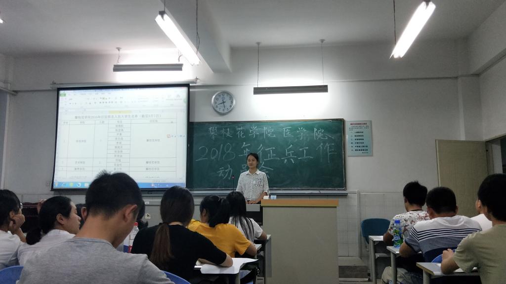 为加强大学生应征入伍政策的宣传教育,引导在校大学生立志投身国防建设,2018年3月20日晚,医学院2017级临床医学专业同学以主题班会的形式开展了2018年大学生征兵动员大会。