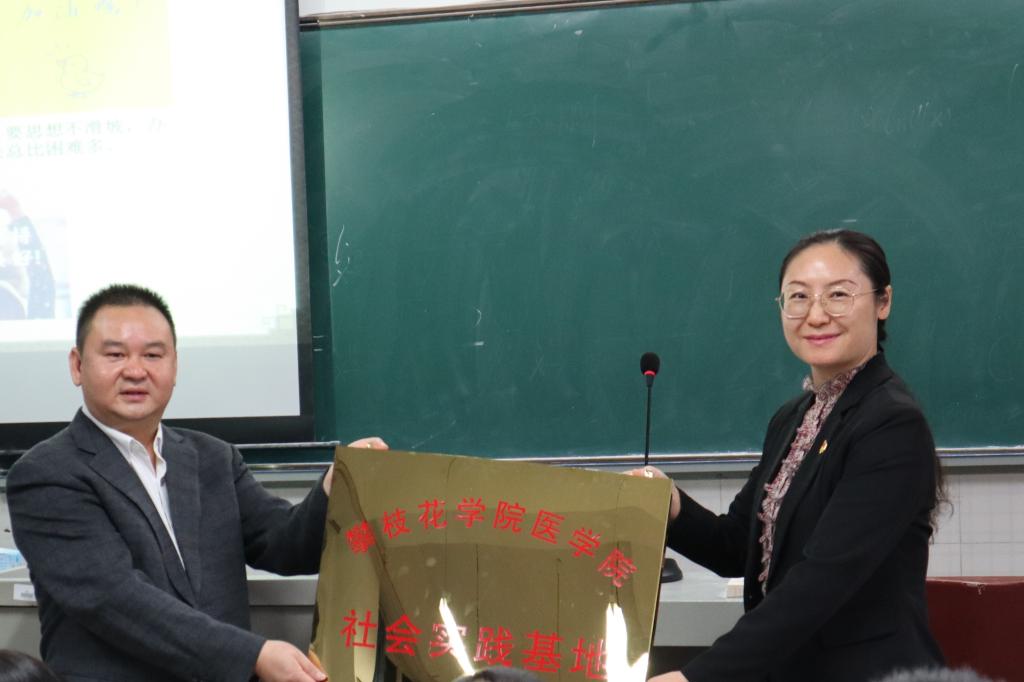 最后,现场举行了社会实践基地授牌仪式,张勤代表医学院为东区银江镇卫生院授予“攀枝花学院医学院社会实践基地”,双方就下一步医学生开展社会实践的内容与形式进行了交流。