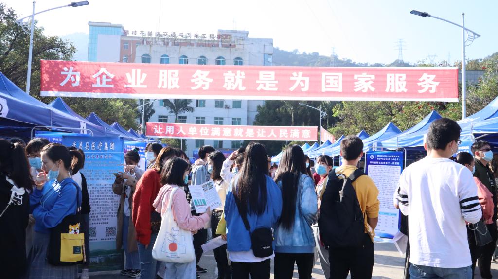 招聘会现场气氛十分热烈,展位前人来人往,同学们针对具体岗位任务、职业发展空间以及个人薪资待遇等问题向招聘单位进行一一咨询。招聘会结束后,意向签约学生370人,投简历人数285人,签约人数80人。