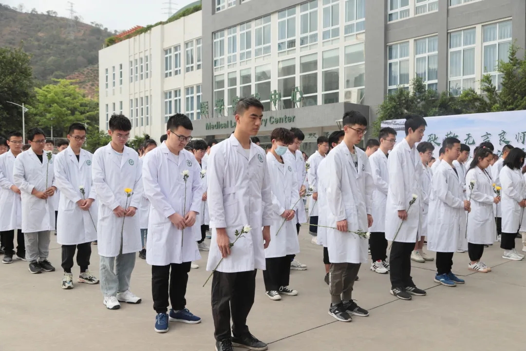 4月4日上午,我院在医学实验中心解剖楼举行“致敬无言良师 以爱诠释生命”清明祭奠活动。攀枝花市红十字会会长岑忠兰、我院党委书记李东及基础医学院师生代表200余人参与了本次活动。
