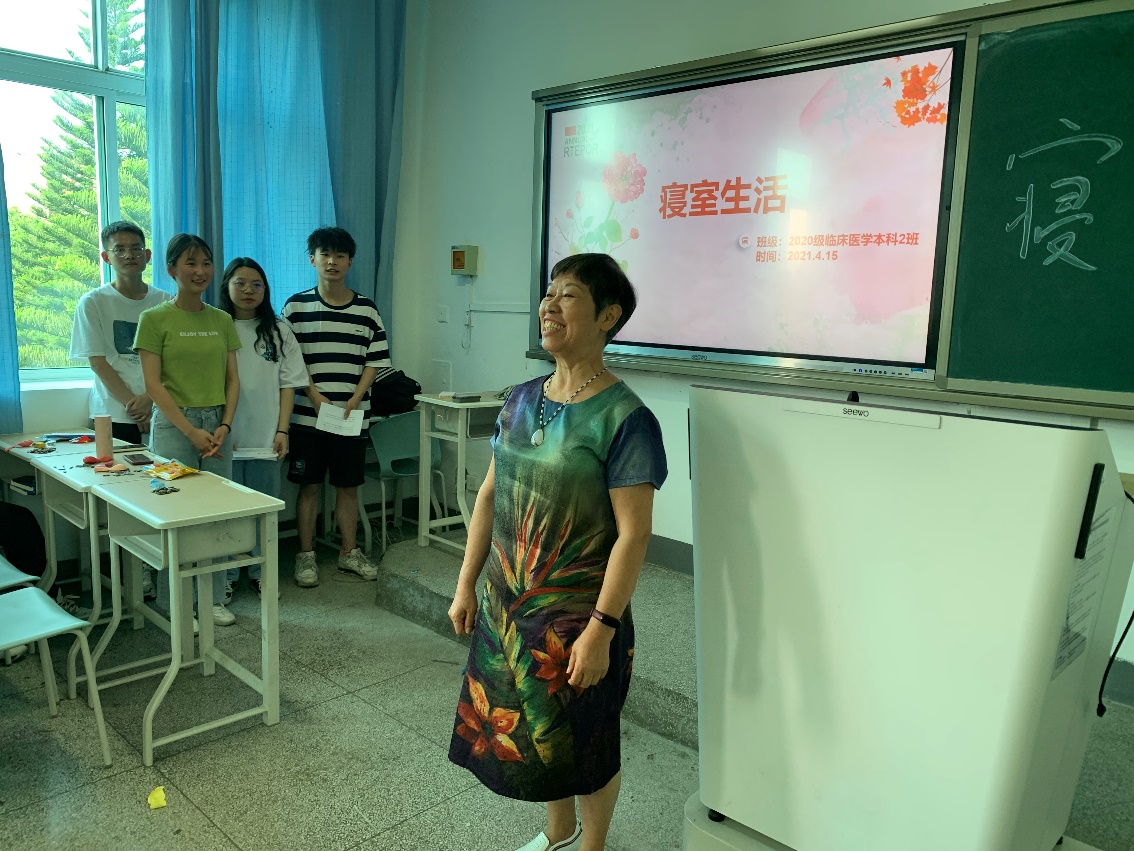 4月15日和4月21日,基础医学院分别邀请我校关工委常务副主任金作衡,基础医学院关工委老师何锡英指导2020级临床医学班级开展的以“寝室生活”为主题的心理班会活动。班会上,同学们先后开展了各式各样的互动游戏并邀请关工委老师和辅导员参与相应的活动。