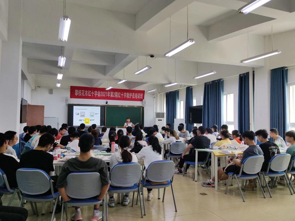 4月18日下午,由攀枝花市红十字会、攀枝花学院基础医学院红十字协会举办的救护员培训于实验楼405教室顺利举行。由攀枝花市十九治医院护士长兼攀枝花市红十字会万由勤老师担任主讲人。