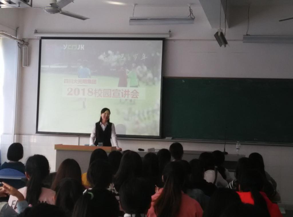 | 四川大光明眼镜公司人力资源总监陈莉蓉为我院学生进行宣讲 |