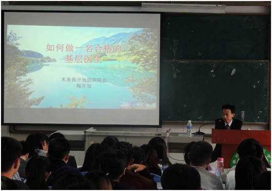 陶开旭从各个方面深入浅出的讲解了如何成为一个好医生,让同学们受益匪浅。经过陶院长的精彩演讲后,同学们更加了解怎样做好一名基层医生,并为这个目标而努力奋斗。