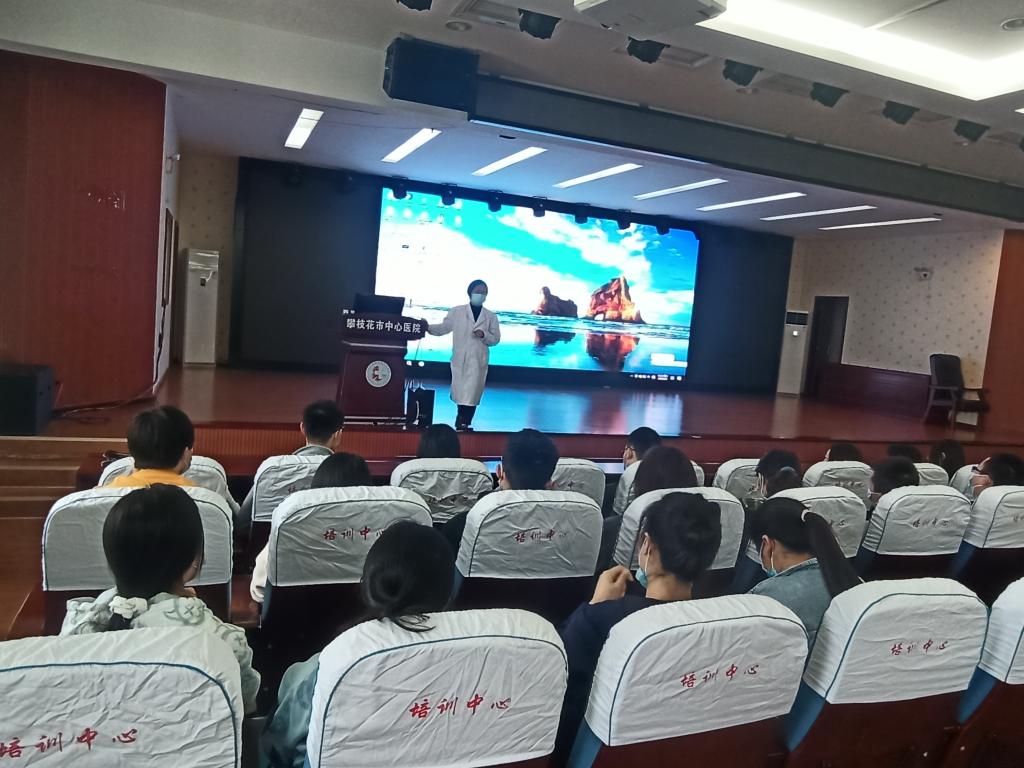 宣讲会上攀枝花市中心医院老师向同学们详细介绍了医院的发展历程,以及医院的工作环境,并具体介绍了医院的规范化培训的要求及政策、待遇,医院规培采取预招录、网上报名、基本理论和技能考核相结合的招聘方式,按照相关要求完成规范的培训内容,并应通过统一结业考核。