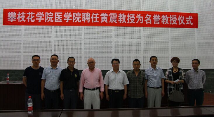 2016年4月22日下午,在校图书馆二楼学术报告厅举行了世界著名核酸研究专家、美国乔治亚州立大学黄震教授受聘我校名誉教授的聘任仪式。仪式由人事处叶凌雪副处长主持,并代表学校宣读了对黄震名誉教授的聘任决定,校长黄双华教授亲自颁发了攀枝花学院特聘名誉教授聘书。