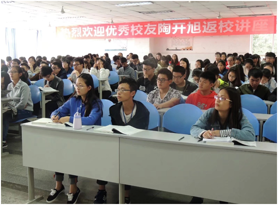 为加强学生校友意识,11月4日上午,医学院邀请优秀校友陶开旭在西苑笃行楼J1-1举办讲座,医学院近200名在校学生参加了这次讲座。