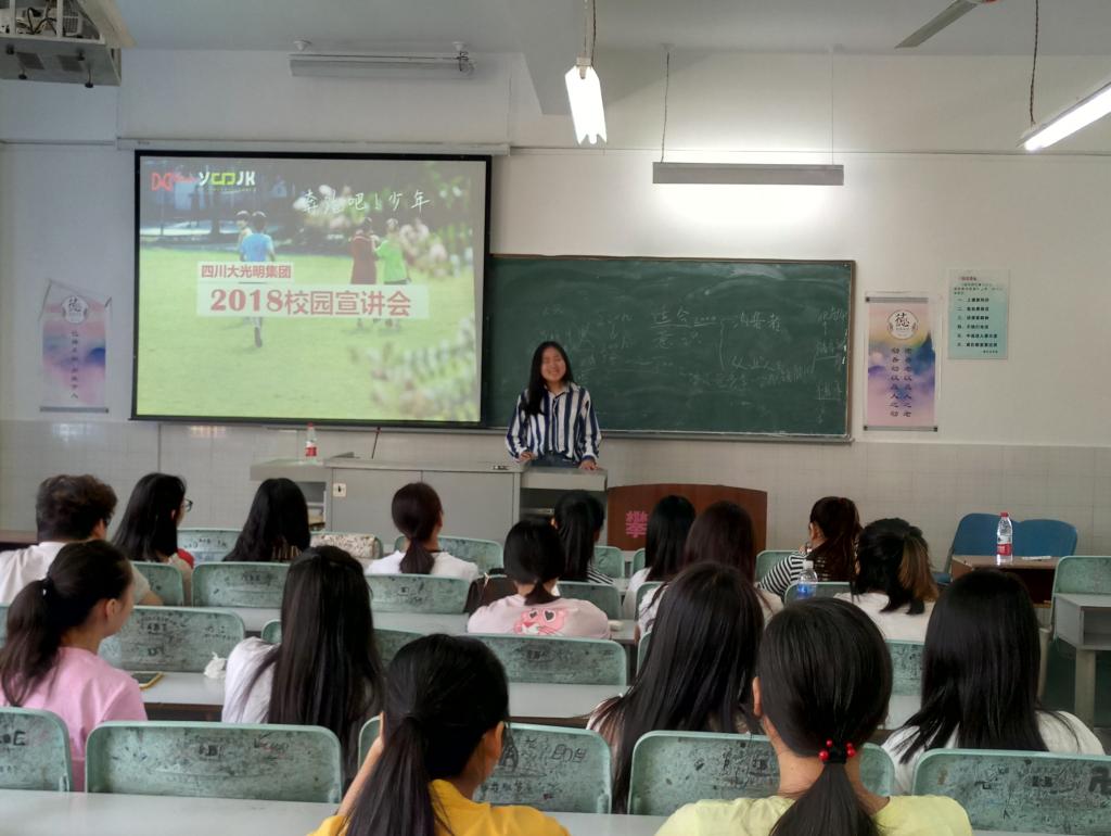 2017届眼视光技术专业校友刘嘉泓现工作于四川大光明眼镜公司,此次代表用人单位为医学院毕业生宣讲。会上,刘嘉泓介绍了公司企业规模、发展战略以及人才培养计划和福利待遇等,刘嘉泓从视光学发展、专业定位以及职业生涯规划等方面与在场学生进行了交流。招聘会现场气氛活跃,互动效果良好。