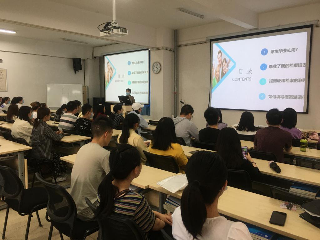 牛洁从择业、就业以及毕业生档案派遣三个方面给同学进行了详细讲解与经验分享,详细介绍了今年的就业形势和基层就业的政策,并分析了医学院近三年考研的情况,强调今年准备二战考研的同学一定要准确定位自己,不要盲目的二战。